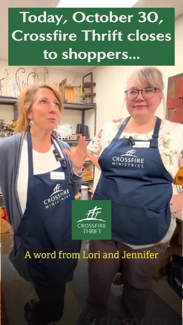 Every retail purchase supports the overall purpose of Crossfire—to help folks in tight places by providing no-cost grocery shopping, clothing and care.